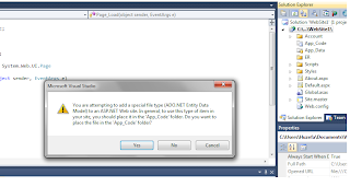 6) A warning dialog box will come , just say yes and app_code folder will be created in your solution